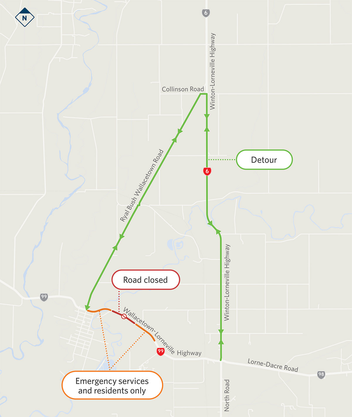 During this time, a detour will be available for all vehicles via Ryal Bush-Wallacetown Road, Collinson Road and State Highway 6/Winton-Lorneville Highway. All businesses will be able to remain open and accessible, while residents will continue to have access to their properties during this closure.