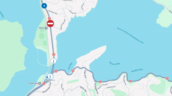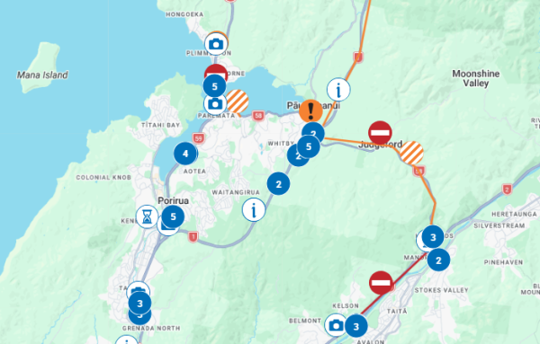 Further north, following a crash reported around 8:15 am, State Highway 59 has a southbound closure in place  to southbound traffic between Paekākāriki and Pukerua Bay. Drivers can expect travel delays while this incident is being resolved.