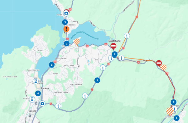 The route has been particularly affected near Judgeford and towards Pāuatahanui. Road crews  are working hard to restore the route.